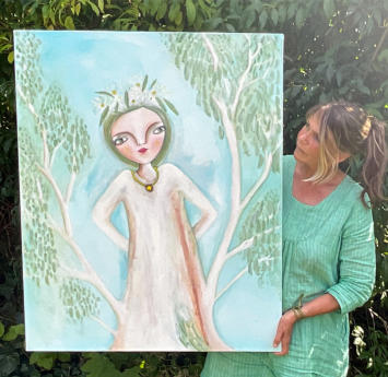 Die Eukalyptusfrau   Jahresbild 2024 mit Jahresbotschaft über die Resilienz.  Es geht darum, die eigenen Ressourcen, die eigenen Schätze, die eigene Kraft, das was Resilienz ausmacht, das eigene Innere, was wir an Freude haben, das eigene Licht, das was uns wirklich stärkt, auch in Zeiten, in denen vieles wegbricht.   Und das bedeutet, auch mit Niederlagen, auch mit Situationen, die versuchen uns aus dem Leben irgendwie herauszureissen, dass wir uns wieder aufstellen können, das wir uns der sonne ausrichten, dass wir im Licht stehen, dass wir halt im Grunde immer wieder mit frischen Impulsen versorgt sind.    Acryl auf Leinwand 70 x 100 cm Gemälde auf Keilrahmen mit einer Rahmenstärke von 4 cm  Empfangen, gemalt und geliebt by Shinaja Du wirst automatisch zum Warenkorb auf Paypal weitergeleitet. Dort kannst Du aber auch andere Zahlungsmethoden auswählen.Klicke dazu auf den „Bezahlen“-Button unter dem Paypal-Button.  Um weitere Artikel hinzuzufügen, wechsle wieder zum Shop.