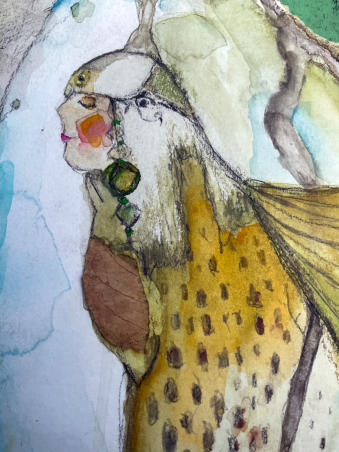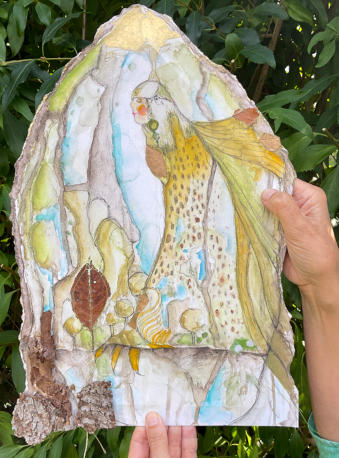 Seelenhaus der Falkenfrau  Die Falkenfrau thront hoch oben in den Felsen.  Sie schenkt dir Halt – so kraftvoll und unerschütterlich wie die Berge selbst.  Dieses Seelenhaus erinnert dich daran, dass du dich aus dir selbst heraus tragen kannst.  Es verkörpert Durchhaltekraft und innere Stärke, die dich auch dann nährt, wenn du glaubst, keine Reserven mehr zu haben.  Die Falkenfrau ist mit dem Spirit verbunden.  Sie schenkt dir tiefe Einsichten und bewahrt dich davor, den inneren Halt zu verlieren.  Sie hält den Blick klar und weit – wie ein Falke im Flug.   by Shinaja   mit echten Holzelementen und Baumrinde, auf Papier/Platte Größe 42 x 29 cm Zum Aufhängen in d(einem) Zauberzuhause.  Empfangen, geliebt und gemalt by Shinaja Du wirst automatisch zum Warenkorb auf Paypal weitergeleitet. Dort kannst Du aber auch andere Zahlungsmethoden auswählen.Klicke dazu auf den „Bezahlen“-Button unter dem Paypal-Button.  Um weitere Artikel hinzuzufügen, wechsle wieder zum Shop.