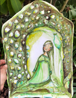 Meine Seelenhäuser sind mit Acryl auf Papier gemalt, genäht, auf Holz montiert und mit einem Bohrloch für einfaches  Aufhängen versehen. Du kannst sie aber auch auf eine  kleine Tischstaffelei stellen. 70,00 € Seelenhaus Gärtnerin 80,00 € Seelenhaus Brennesselchen 35,00 € Seelenhaus „Eine Botschaft“ 160,00 € Seelenhaus Butterblume 160,00 € Seelenhaus Falkenfrau 120,00 € Seelenhaus Fliederfrau 90,00 € Seelenhaus des Frühlings 220,00 € Seelenhaus Krokus verkauft 180,00 € Seelenhaus der wahren Natur 160,00 € Seelenhaus ,,Herr Löwenzahn‘‘ 95,00 € Seelenhaus der Vergänglichkeit